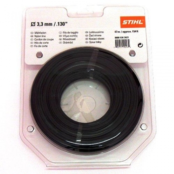 Stihl mowing/cutting line, Square Profile, 3.3mm/0.130" Diameter (Black). 47 meter/154 feet.